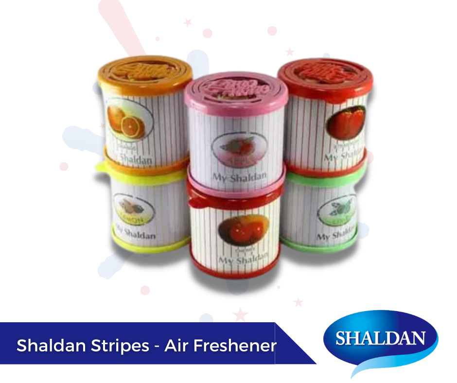 Do you want something new for your car? Look no further as Shaldan Stripes is an air freshener that will leave your car smelling fresh and clean! It comes in 6 different fruity scents such as Lemon, Lime, Apple, Orange, Strawberry and Cherry. One can can last up to 60 days. Buy one today!